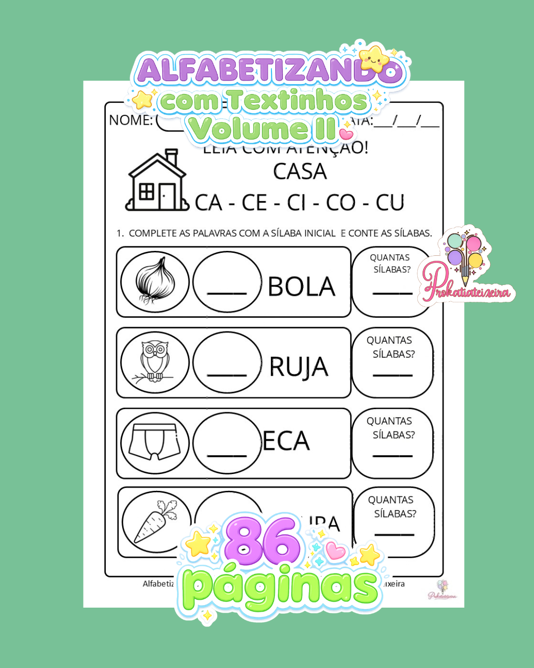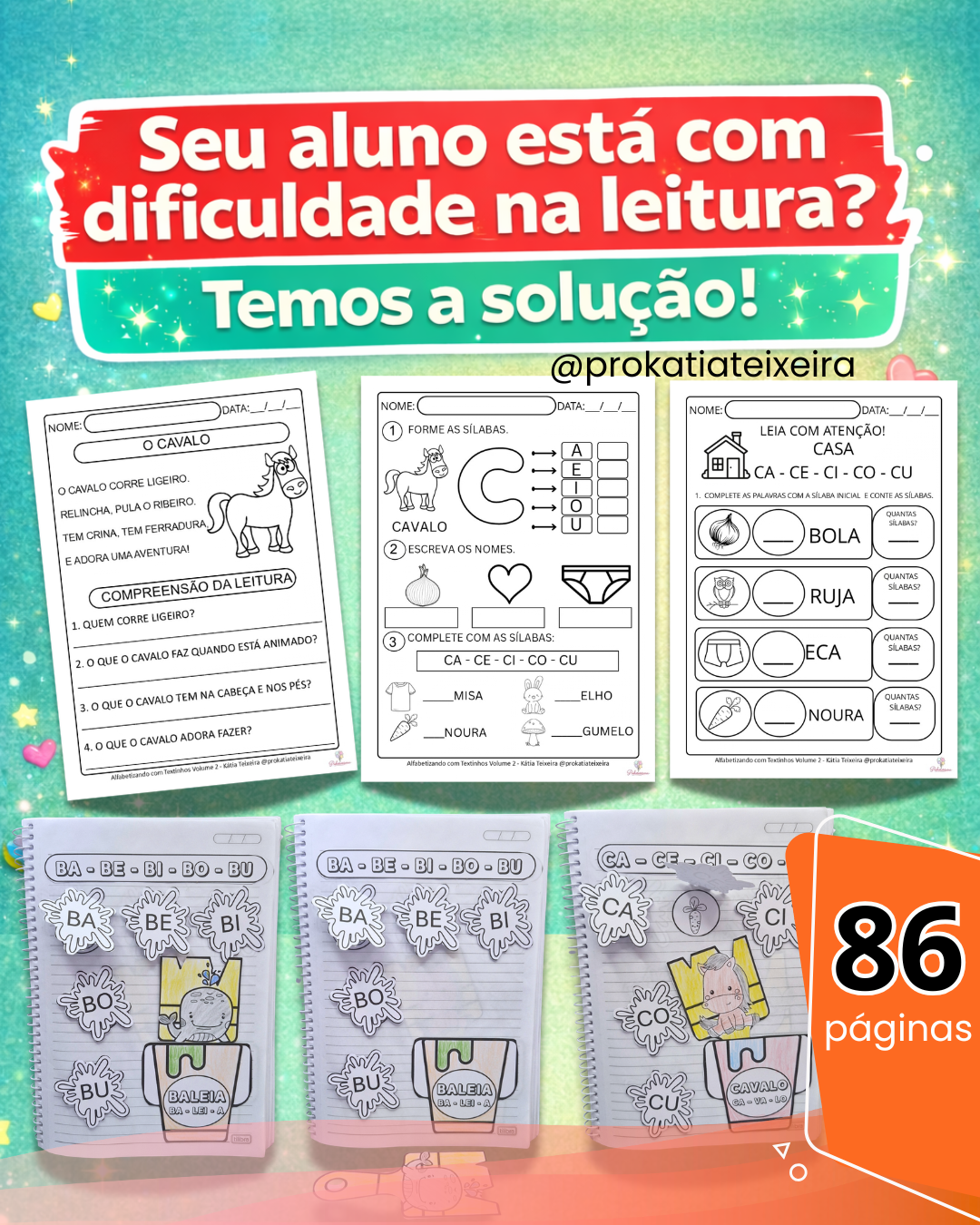 ALFABETIZANDO COM TEXTINHOS VOLUME 2 COM 86 PÁGINA